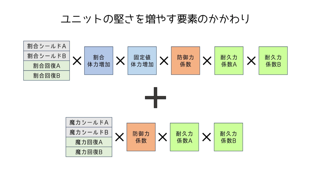 「体力要素(体力、シールド)」×「防御要素(AR、MR)」×「耐久力」