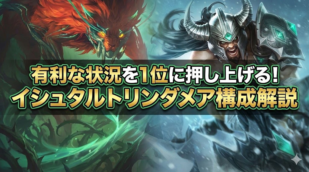 • 相乗効果: 3〜4位で終わりがちなトリンダメア構成に、イシュタルの高コスト報酬(ブロック等)が加わることで、最終盤のパワー不足を解消します。
