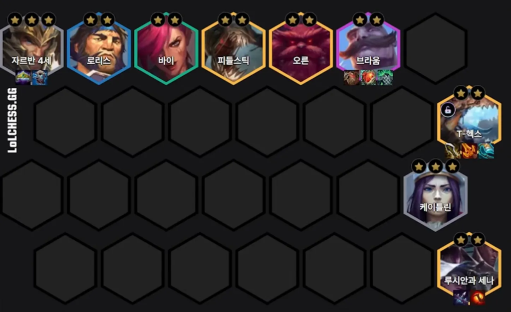 - シナジーの調整: T-Hex解除後はオリアナやセラフィーンを外し、ワーデンやガンスリンガーを追加。基本はレベル9を目指します。