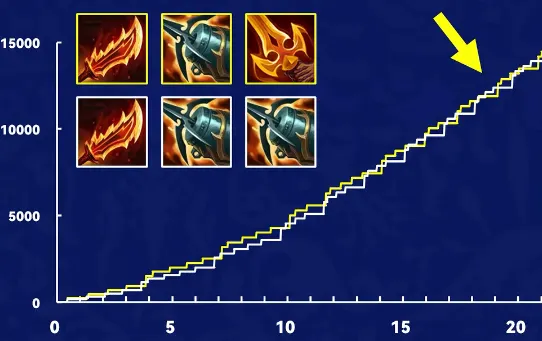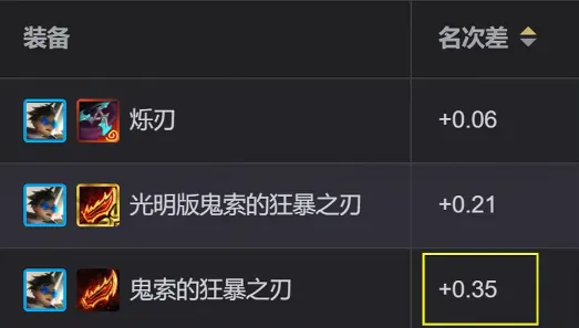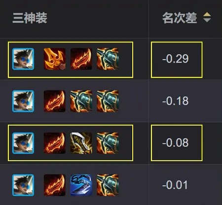 結果として、グインソーの高い攻撃速度上昇効果は無駄になり、統計上もグインソーを装備すると平均順位が0.35位下がるというデータが出ています。