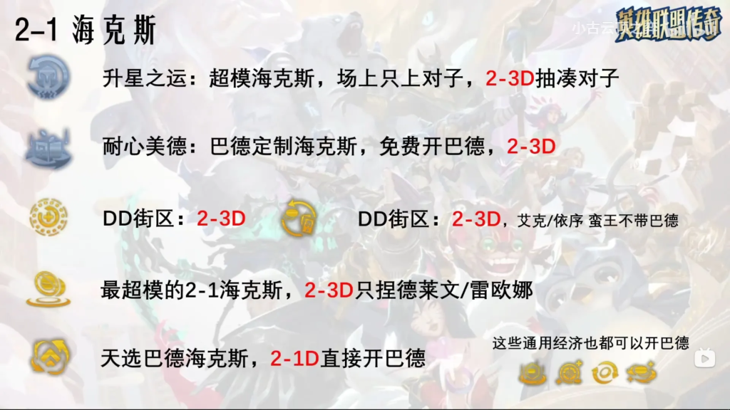 | 英雄のラッキーバッグ | 2-3でリロールし、複製器でドレイヴンやレオナを強引に重ねる。 |