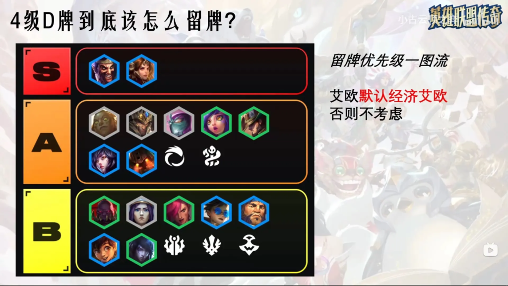 レベル4でのバードリロール時に確保すべき重要チャンピオンのリストです。