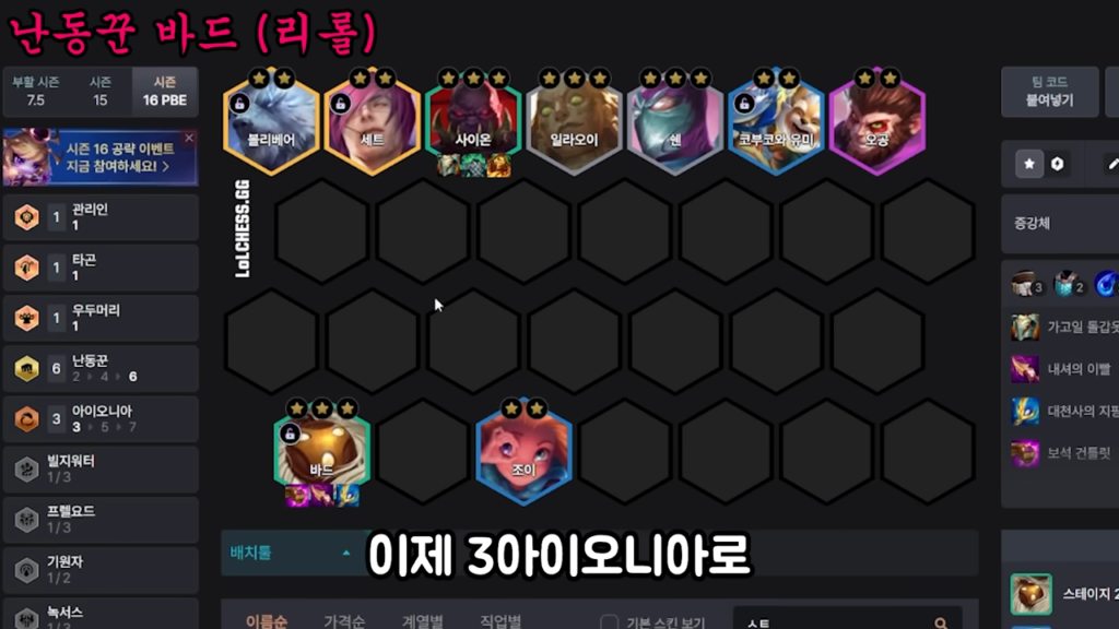 ボリベアを加え、さらにレベルを上げて枠が空いたらセトを入れれば、アイオニア(3)も発動して、より洗練された構成になります。