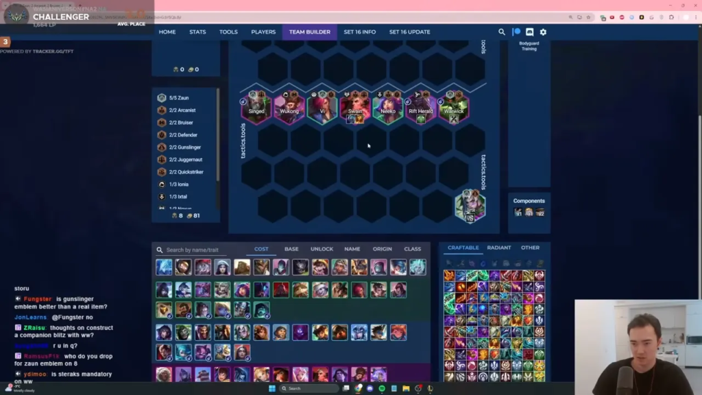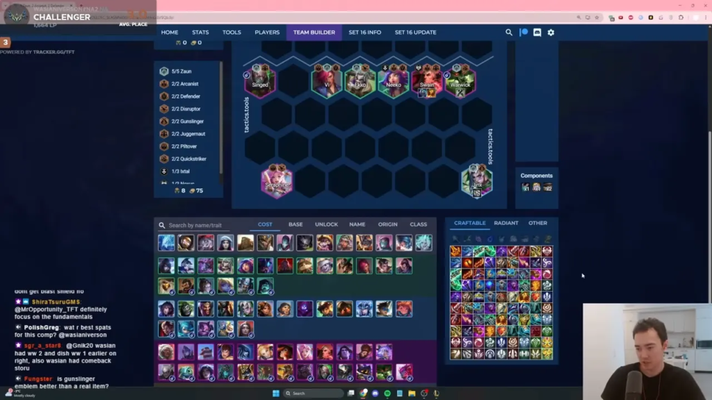 16.4で注目されるWasianiverson氏のワーウィック構成は、「特定の強力なユニットに依存しつつも、最終形を決めつけない柔軟さ」が魅力です。
