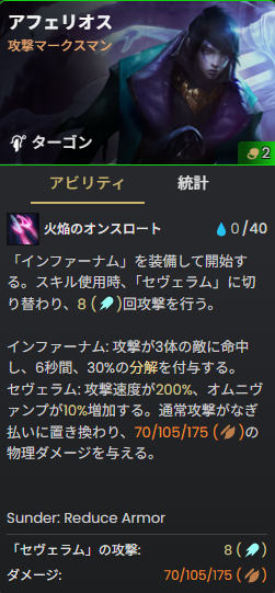 また、アフェリオスの火力の約70%はスキル由来であるため、本来ならIEは最優先アイテムのはず。