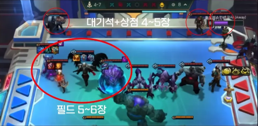 このような状況で無理にオールインして4コスト★3を狙ったり、4コストを探すためにお金を浪費する必要はなく、そのラウンドは見送り、確率が改善するタイミングを待つ判断も有効である。