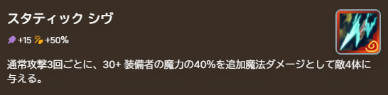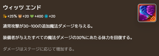 魔力系の近接通常攻撃チャンピオンに優先的に装備。