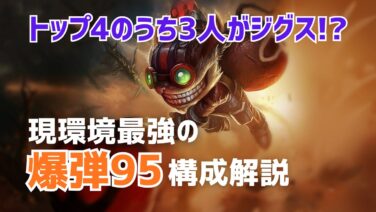 パッチ16.2で過剰強化されたジグスを主軸とした「爆弾95」構成を徹底解説!中国のチャレンジャー・小古氏による、ヨードル・ヴォイドなど進行に合わせた4つの柔軟なバリエーションを網羅。必須装備のグインソーや運営のコツを掴んで、今すぐLPを稼ぎましょう!